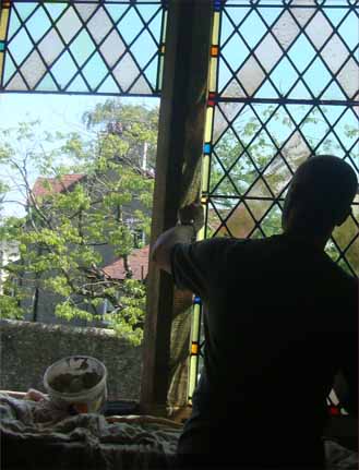 Fitting four replacemnet leaded panels, West Calder Parish Church