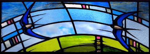 One of three windows using fused, opalescent and textured glass.